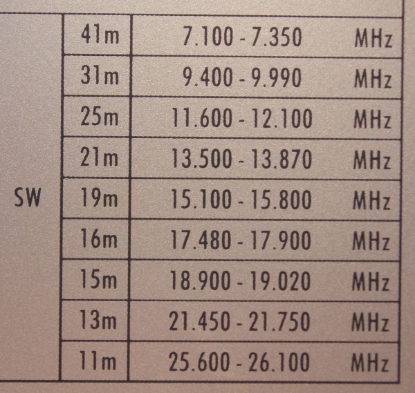 25 m 11,6 - 12,1 MHz
