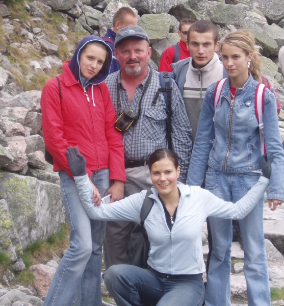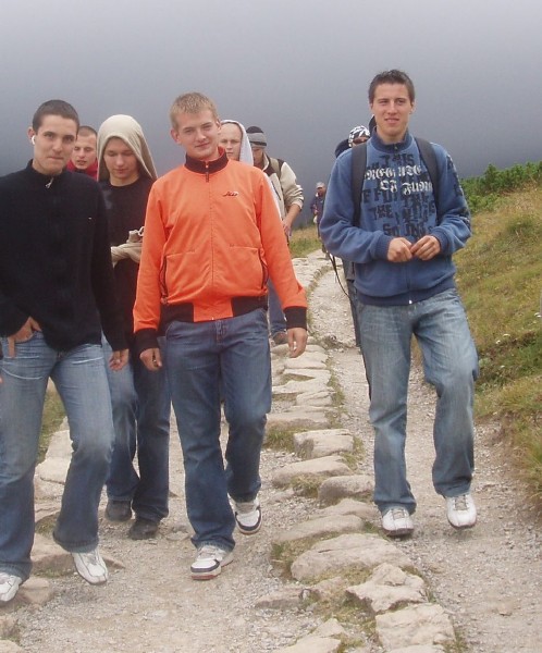 W drugim słonecznym dniu, 16 września 2005 roku, wybraliśmy się do jednego z najpiękniejszych zakątków Tatr Polskich leżącej w Dolinie Stawów Gąsienicowych u podnóża granitowych wierchów, Hali Gsienicowej (ok. 1520 m n.p.m.) Na pokrytej granitowymi głazami polanie znajduje się parę domków - strażnicówka i stacja naukowa TPN, placówka naukowa PAN i IMGW oraz Centralny Ośrodek Szkoleniowy Polskiego Związku Alpinizmu. Nieco w dole na skraju lasu zatrzymaliśmy się w wielkim murowanym schronisku PTTK tzw. "Murowańcu". Już sama dla siebie Hala Gąsienicowa stanowi cel pięknej udanej wycieczki, ale nasza grupa udała się jeszcze do Czarnego Stawu Gąsienicowego, który położony jest na wysokości 1620 m n.p.m. Jego powierzchnia wynosi 18 ha, a głębokość 51 m. Jest on czwartym, co do wielkości stawów w polskich Tatrach. Wyprawa na Kościelec zawierała małe elementy wspinaczki, co nie przestraszyło naszej grupy, chociaż mało doświadczonym sprawiało trochę kłopotów.. Próby dojścia na szczyt mimo silnego wiatru i pogarszających się warunków atmosferycznych, można uznać za bardzo dobrą rozgrzewkę przed poważniejszymi celami przyszłych alpinistów z klasy 2f, którzy dziękują naszemu przewodnikowi panu Bogusławowi Jakubcowi za zorganizowanie wycieczki, doping, wszelką pomoc, oraz trafne decyzje.