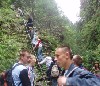 | W pierwszym słonecznym dniu, 15 września 2005 roku, wybraliśmy się do najpiękniejszej i największej z dolin w całym paśmie Tatr po polskiej stronie - Doliny Kościeliskiej, która od dwóch wieków urzeka swoją urodą poetów, pisarzy, malarzy, filmowców i coraz większą rzeszę turystów. Bajkowa rozmaitość krajobrazu, osobliwości fauny i flory, czynią z Doliny Kościeliskiej istny "majstersztyk przyrody". Tu ściany skalne zwierają się w wąskie bramy (Kantaka, Kraszewskiego), przyśpieszając bieg Potoku Kocieliskiego lub otwierają się ku malowniczym kotlinom i halom. Pod wapiennymi turniami dolnej części Kościeliskiej ciemnieją czeluście jaskiń. Po przejściu przez wąską uliczkę wąwozu doszliśmy do jaskini "Smocza Jama". Aby się tam dostać, pokonaliśmy metalową drabinę. W śliskiej jaskini szliśmy stromo pod górę przy pomocy łańcucha. Niezbędna okazała się latarka.
